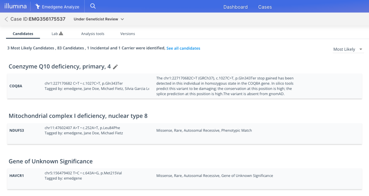 Emedgene variant interpretation software streamlines your tertiary analysis workflows for rare disease genomics and other germline research applications